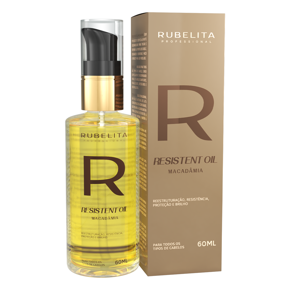 O Óleo Reparador Resistent Oil Macadâmia da Rubelita Professional proporciona aos cabelos maior resistência, maleabilidade e elasticidade, além de melhorar a aparência, deixando-o com brilho, macio e nutrido.